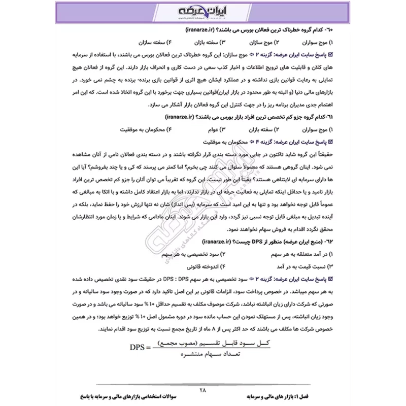 سوالات استخدامی بازارهای مالی و سرمایه با پاسخ ایران عرضه (جزوه فنری)