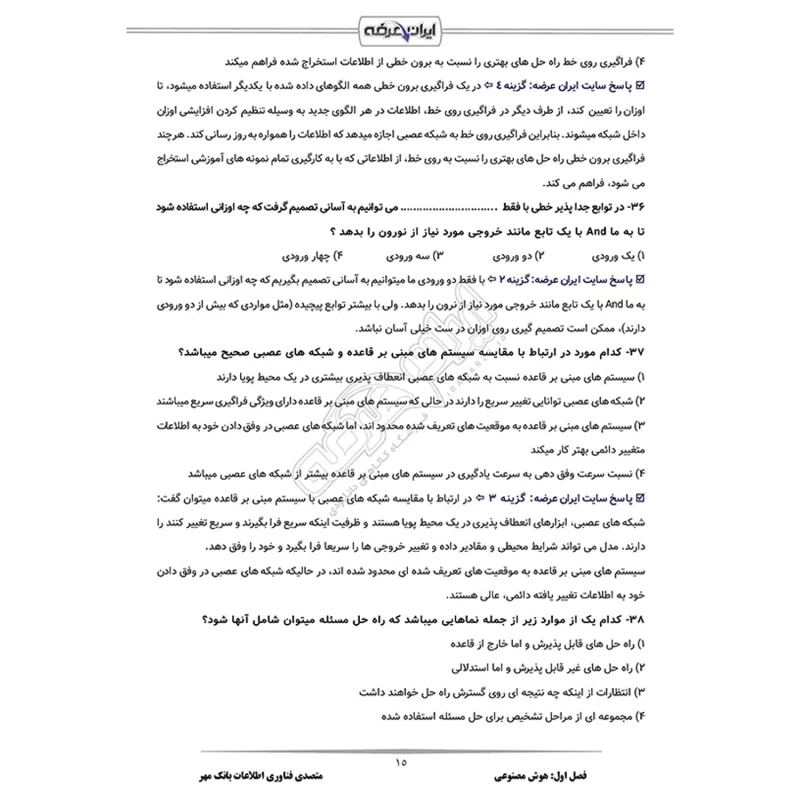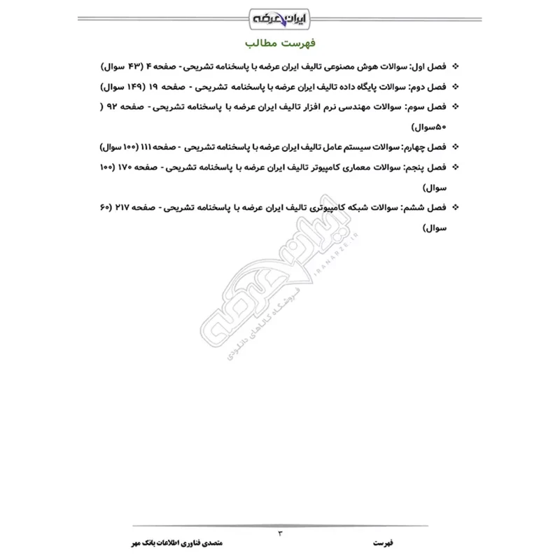 سوالات استخدامی متصدی فناوری اطلاعات بانک مهر ایران با پاسخ ایران عرضه (جزوه فنری)
