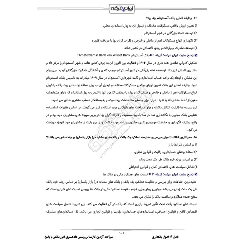 سوالات آزمون کارشناس رسمی دادگستری امور بانکی با پاسخ ایران عرضه (جزوه فنری)