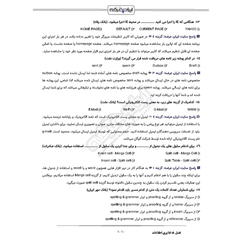جزوه استخدامی قوه قضاییه (کادر اداری) شامل 1013 صفحه به شرح زیر: فصل 1: سوالات معارف اسلامی (جزوه آموزشی + سوالات خودآزمایی) - صفحه 4 بخش 1: ولایت فقیه امام خمینی (ره) (30 سوال) بخش 2: طرح کلی اندیشه اسلامی (65 سوال) بخش 3: جدال دو اسلام (30 سوال) فصل 2: سوالات زبان و ادبیات فارسی (جزوه آموزشی + سوالات خودآزمایی) - صفحه 301 (30 سوال) فصل 3: اطلاعات عمومی و دانش اجتماعی (جزوه آموزشی + سوالات خودآزمایی) - صفحه 373 (45 سوال) فصل 4: سوالات قوانین و مقررات اداری و قانون اساسی (جزوه آموزشی + سوالات خودآزمایی) - صفحه 609 بخش 1: قانون اساسی (10 سوال) بخش 2: بیانیه گام دوم (10 سوال) بخش 3: قانون برنامه پنج ساله هفتم (30 سوال) فصل 5: ریاضی و آمار مقدماتی (جزوه آموزشی + سوالات خودآزمایی) - صفحه 673 (65 سوال) فصل 6: توانمندی های ذهنی و ویژگی های رفتاری (جزوه آموزشی + سوالات خودآزمایی) - صفحه 778 (30 سوال) فصل 7: زبان خارجه (جزوه آموزشی + سوالات خودآزمایی) - صفحه 825 (47 سوال) فصل 8: فناوری اطلاعات (جزوه آموزشی + سوالات خودآزمایی) - صفحه 886 (30 سوال) |