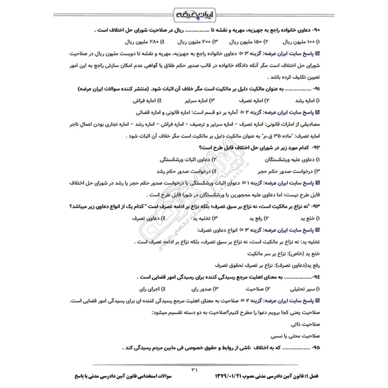 سوالات استخدامی قانون آیین دادرسی مدنی با پاسخ ایران عرضه (جزوه فنری)