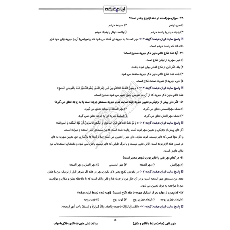 سوالات متون فقه نکاح و طلاق با پاسخ ایران عرضه (جزوه فنری)