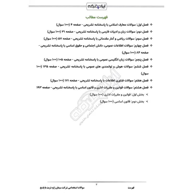 سوالات استخدامی شرکت سیمان زاوه تربت با پاسخ ایران عرضه (جزوه فنری)