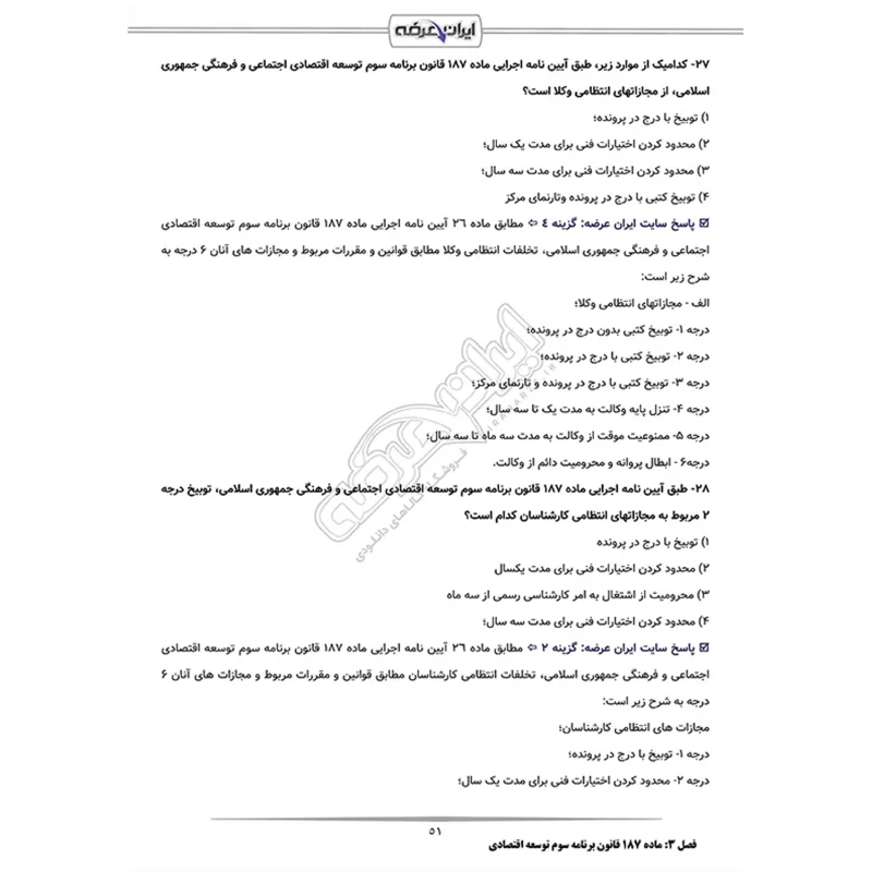 سوالات قوانین و مقررات کارشناس رسمی دادگستری با پاسخ ایران عرضه (جزوه فنری)