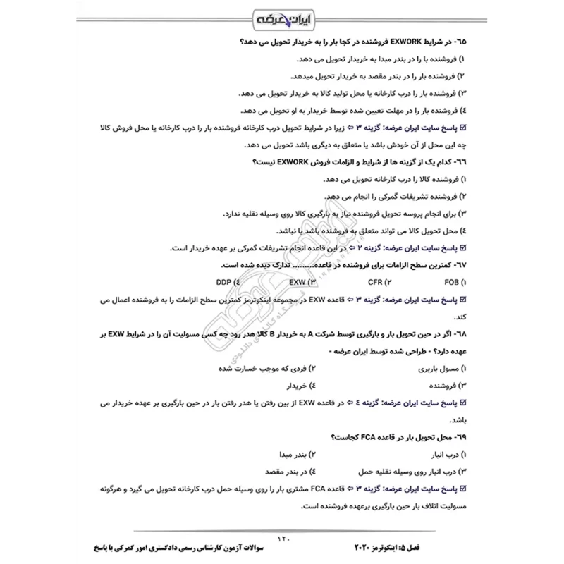 سوالات آزمون کارشناس رسمی دادگستری امور گمرکی با پاسخ ایران عرضه (جزوه فنری)