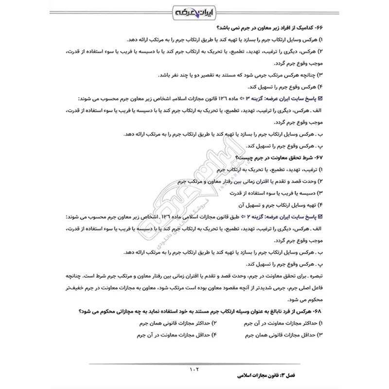 سوالات آزمون کارشناس رسمی دادگستری مامایی با پاسخ ایران عرضه (جزوه فنری)