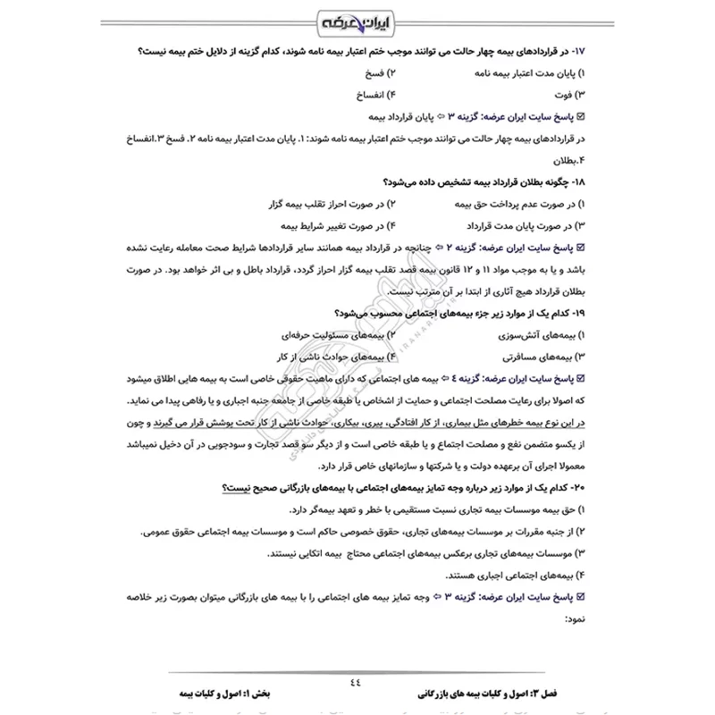 سوالات آزمون کارشناس رسمی دادگستری امور بیمه با پاسخ ایران عرضه (جزوه فنری)