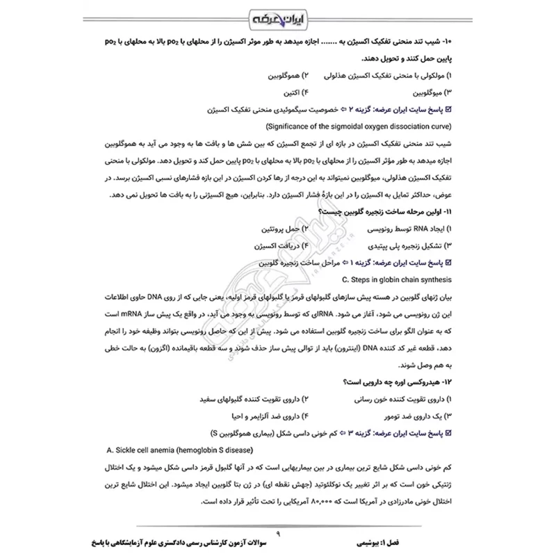 سوالات آزمون کارشناس رسمی دادگستری علوم آزمایشگاهی با پاسخ ایران عرضه (جزوه فنری)