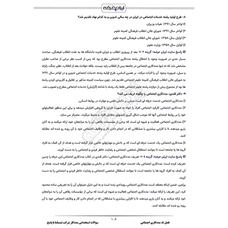 | عنوان جزوه: سوالات استخدامی مددکار شرکت شمساما | ناشر: ایران عرضه |