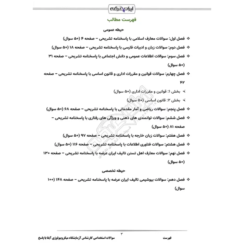 سوالات استخدامی کارشناس آزمایشگاه میکروبیولوژی آبفا با پاسخ ایران عرضه (جزوه فنری)
