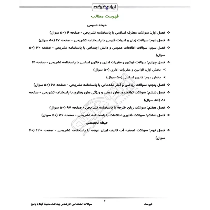 سوالات استخدامی کارشناس بهداشت محیط آبفا با پاسخ ایران عرضه (جزوه فنری)