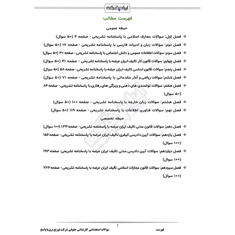 سوالات استخدامی کارشناس حقوقی شرکت توزیع برق با پاسخ ایران عرضه (جزوه فنری)