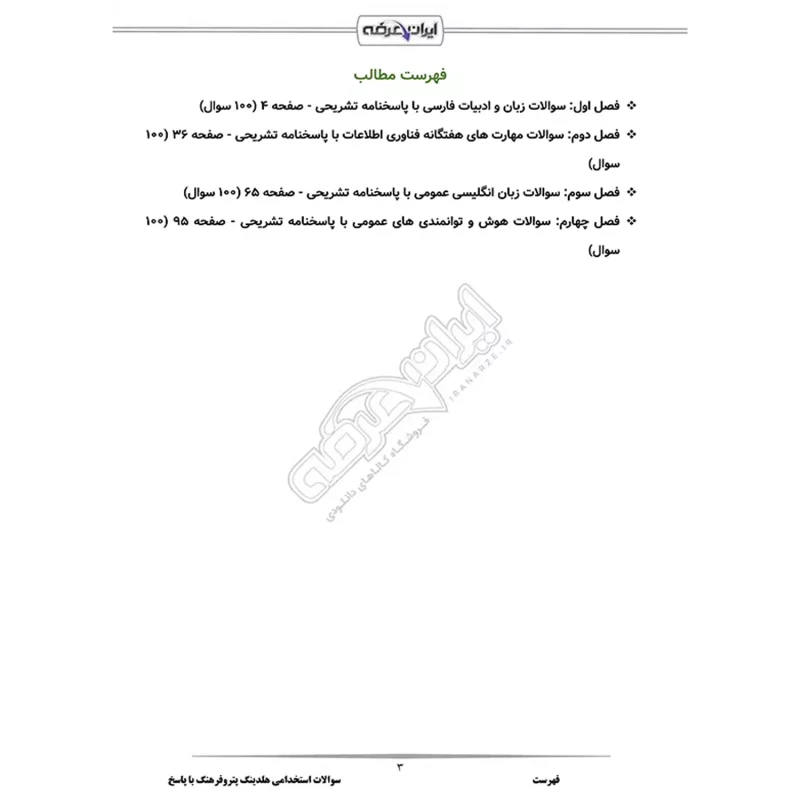 سوالات استخدامی هلدینگ پتروفرهنگ با پاسخ ایران عرضه (جزوه فنری)