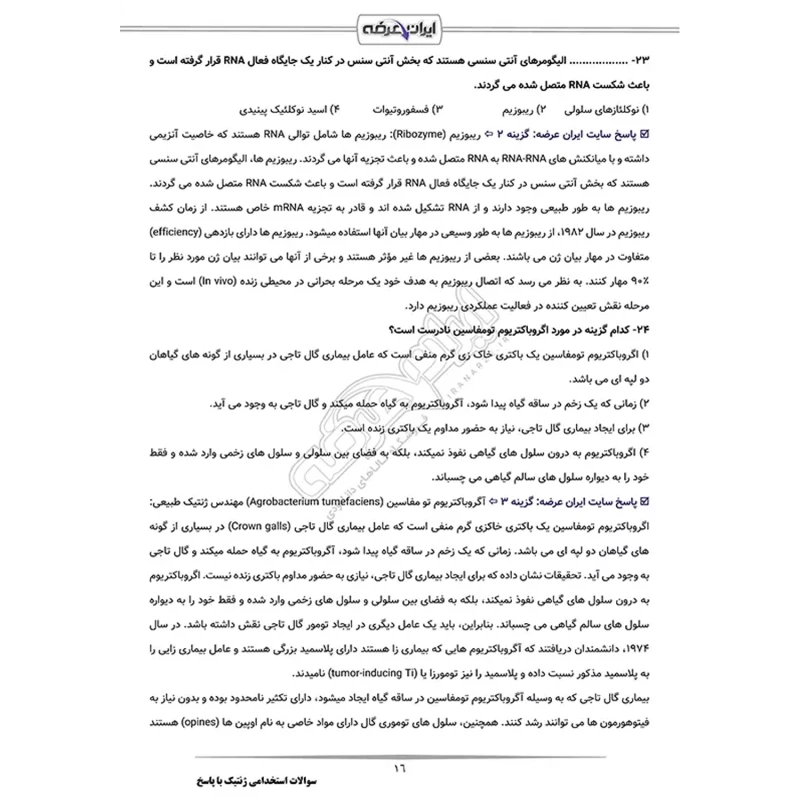 سوالات استخدامی ژنتیک با پاسخ ایران عرضه (جزوه فنری)