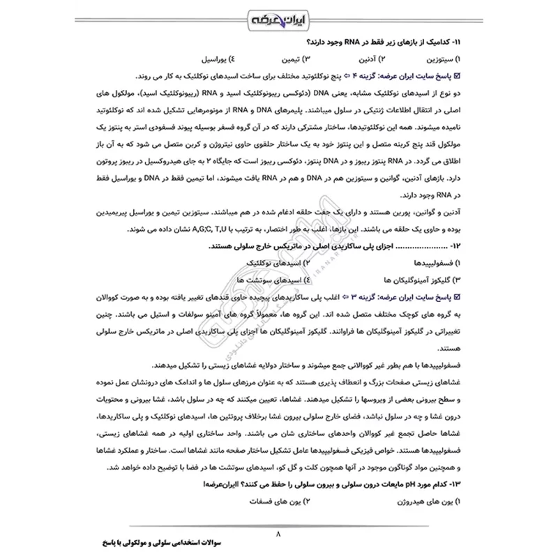 سوالات استخدامی سلولی و مولکولی با پاسخ ایران عرضه (جزوه فنری)