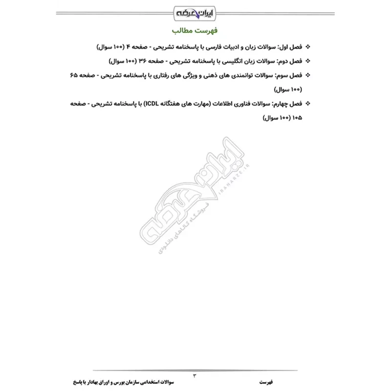 سوالات استخدامی سازمان بورس و اوراق بهادار با پاسخ ایران عرضه (جزوه فنری)