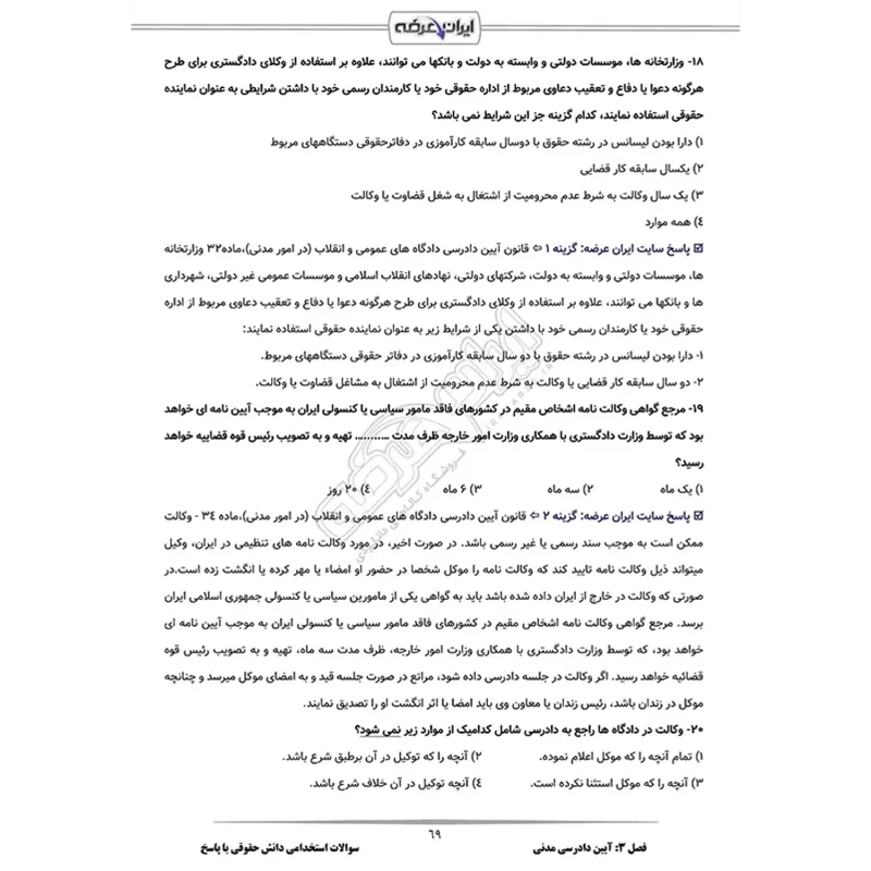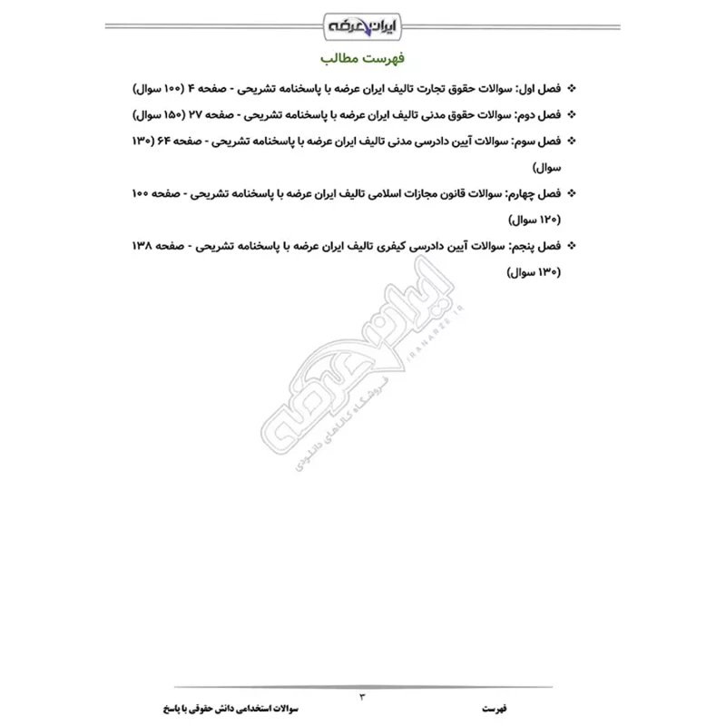 سوالات استخدامی دانش حقوقی با پاسخ ایران عرضه (جزوه فنری)