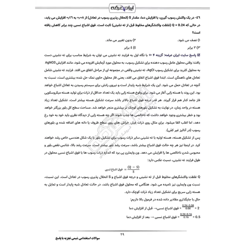 سوالات استخدامی شیمی تجزیه با پاسخ ایران عرضه (جزوه فنری)