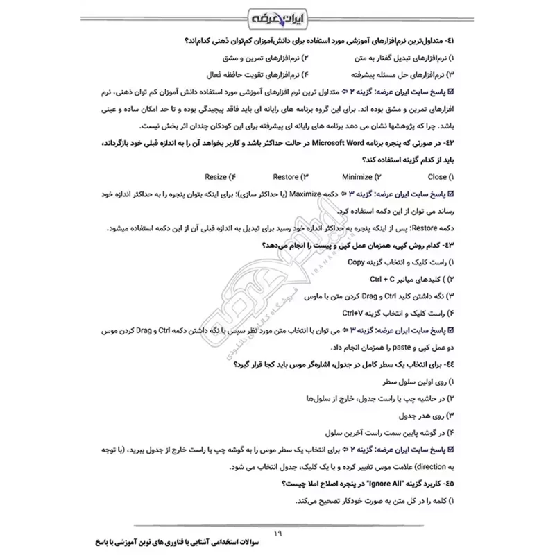 سوالات استخدامی فناوری های نوین آموزشی آموزش و پرورش با پاسخ ایران عرضه (جزوه فنری)