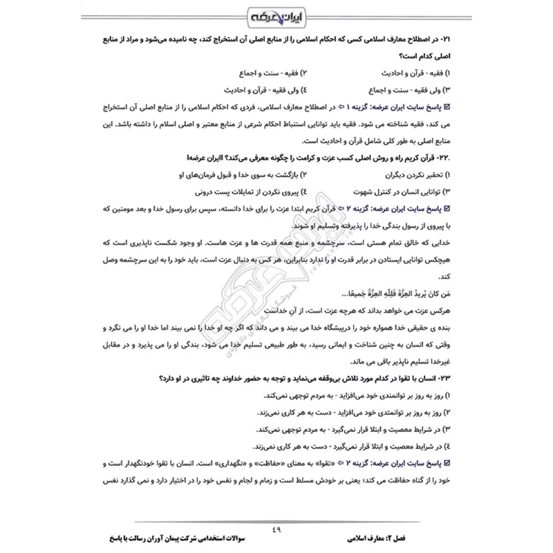 سوالات استخدامی شرکت پیمان آوران رسالت با پاسخ ایران عرضه (جزوه فنری)