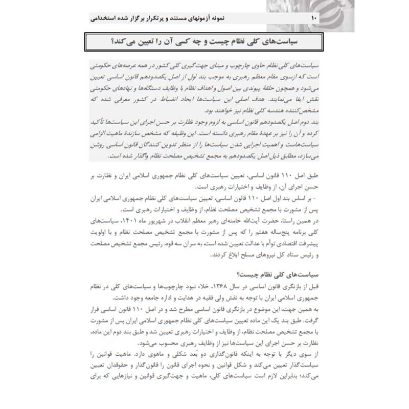 کتاب استخدامی آشنایی با سیاست های کلی نظام و اسناد بالادستی (میرزایی - سامان سنجش)