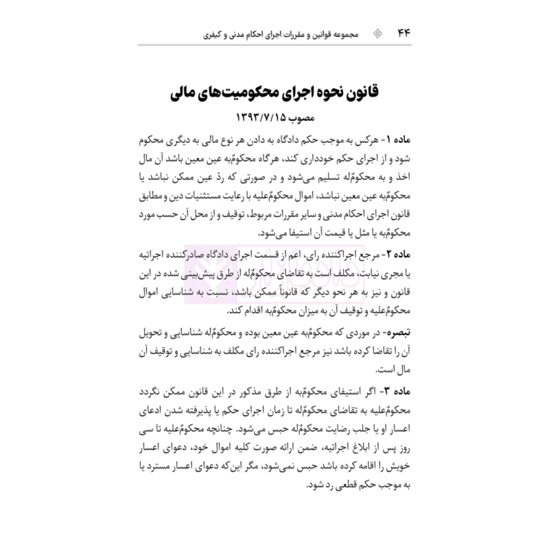 شامل قانون نحوه اجرای محکومیت های مالی و آییننامه اجرائی آن