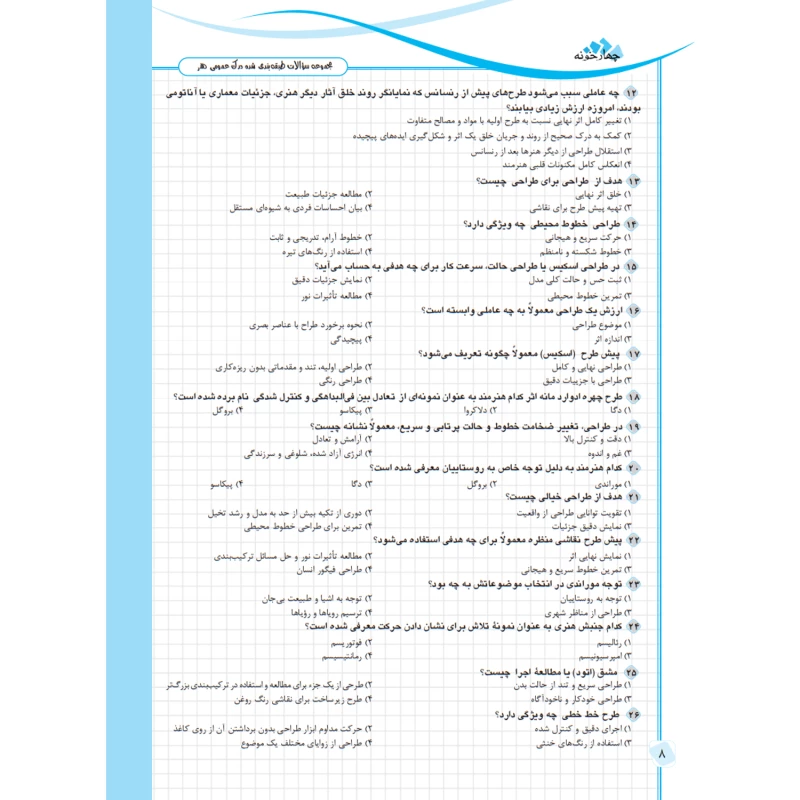 کتاب سوالات درک عمومی هنر (ذاکر - چهارخونه)